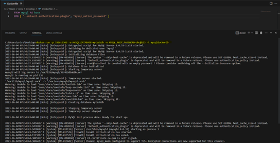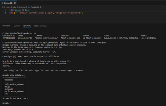 도커 실행 -p 3306:3306 -e MYSQL_DATABASE=mytaskdb -e MYSQL_ROOT_PASSWORD=abc@123 -t mysqldockerdb