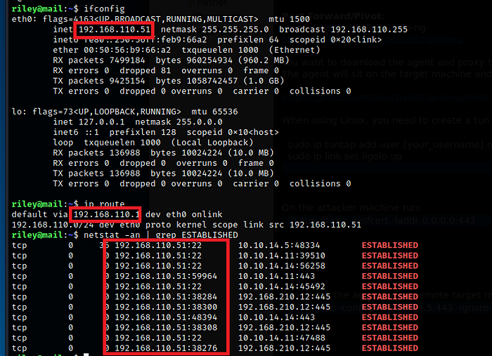 이제 두 개의 서로 다른 네트워크로 피벗하는 방법을 배웠어야 합니다. 이 프로세스는 헹구고 네트워크의 다른 컴퓨터가 다른 서브넷과 통신하는 것을 볼 때 반복됩니다. 다른 네트워크 또는 도메인과 통신하는 시스템에 에이전트 파일을 푸시하고 ligolo 인터페이스에 다시 연결한 다음 ligolo 및 type start를 사용하여 해당 IP 서브넷을 라우팅합니다.