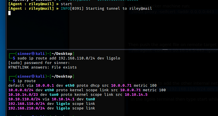 이제 다음 IP 경로를 알았으므로 ligolo에 추가하고 시작할 수 있습니다.