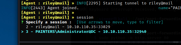 ligolo에서 session 명령을 실행할 때 사용할 수 있는 두 개의 세션이 표시되어야 합니다.